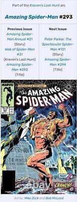 Amazing Spider-Man 293 CGC 9.8 1987 Marvel Secret Wars 8 Black Suit Custom Case. FREE BONUS: Spider-Man Grim Hunt raw comic New Unread.